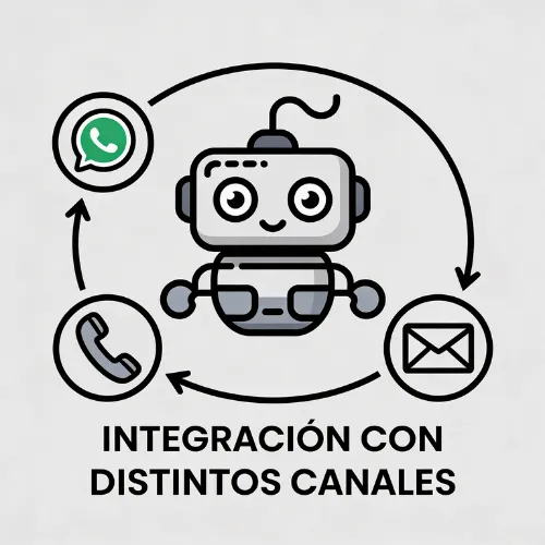 Conectamos WhatsApp, teléfono, email y CRM para que el Agente IA tenga todos los puntos de contacto listos desde el día uno.